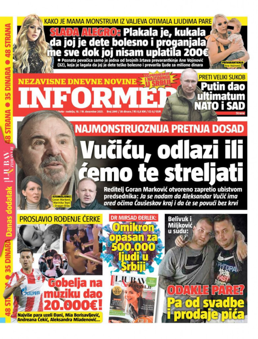 Prelistavanje štampe za nedelju 19. decembar 2021. godine