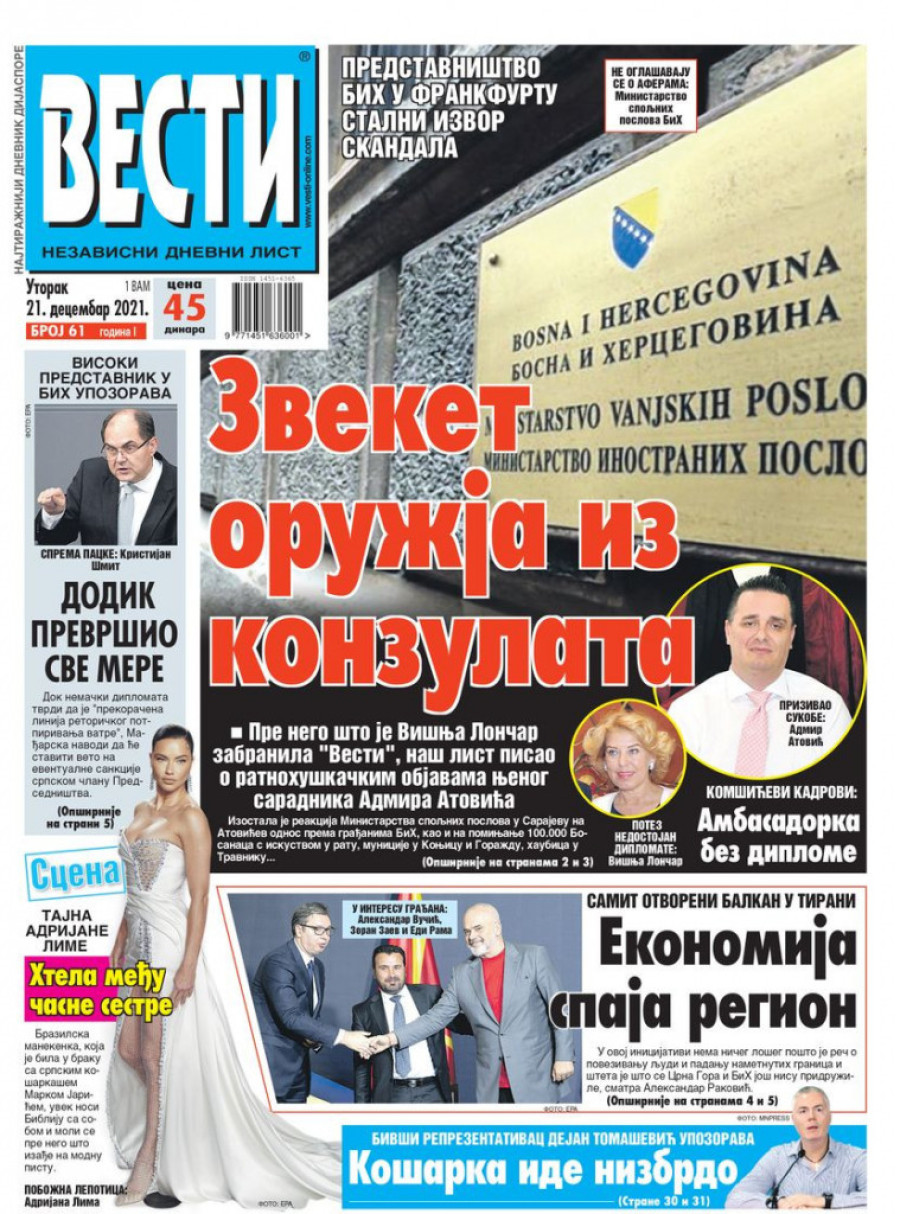 Prelistavanje štampe za utorak 21. decembar 2021. godine