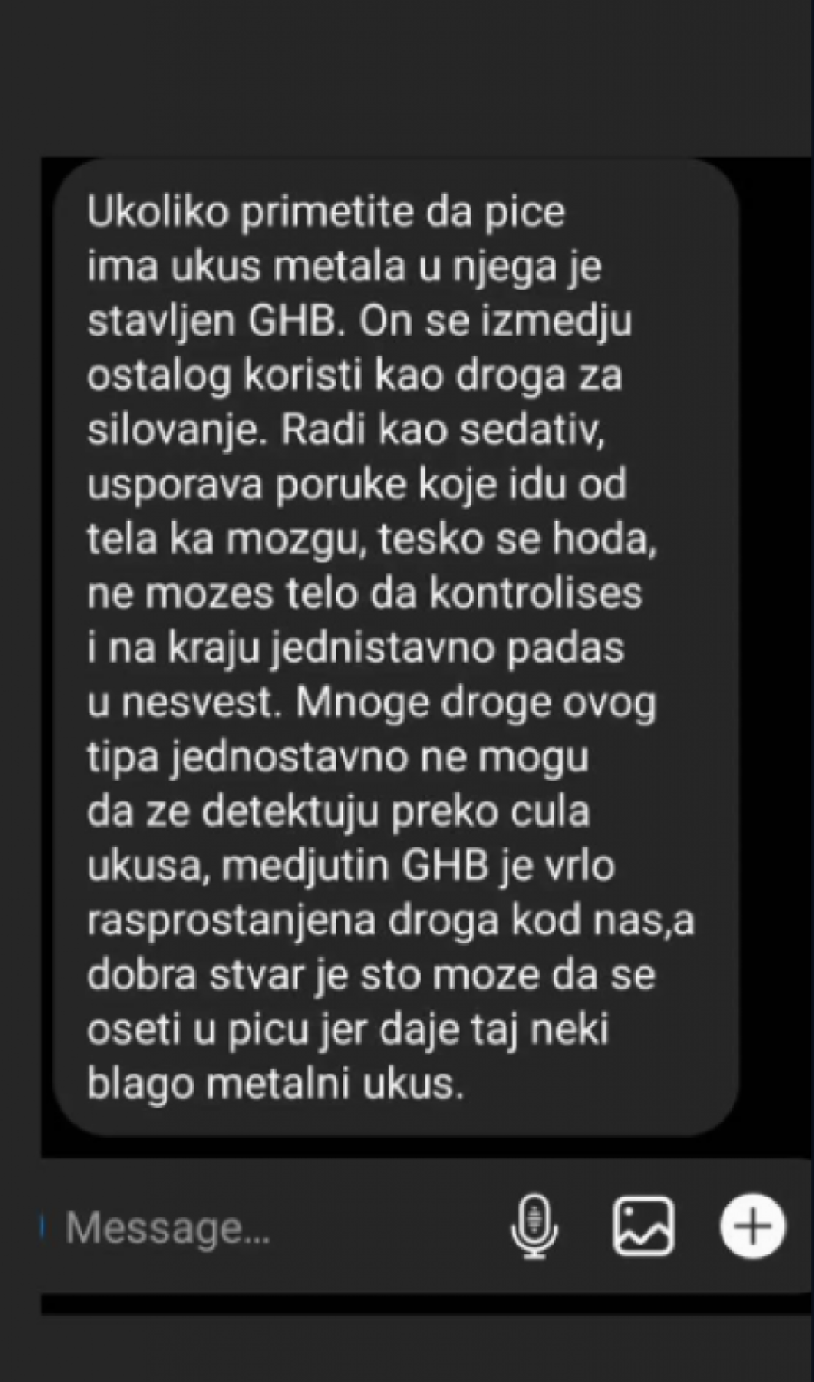 Pored "rafinola" navodi se i popularna "GHB" droga koja je bez mirisa i ukusa i zbog toga se ne detektuje prilikom konzumacije, pa žena ne zna ni šta uzima.