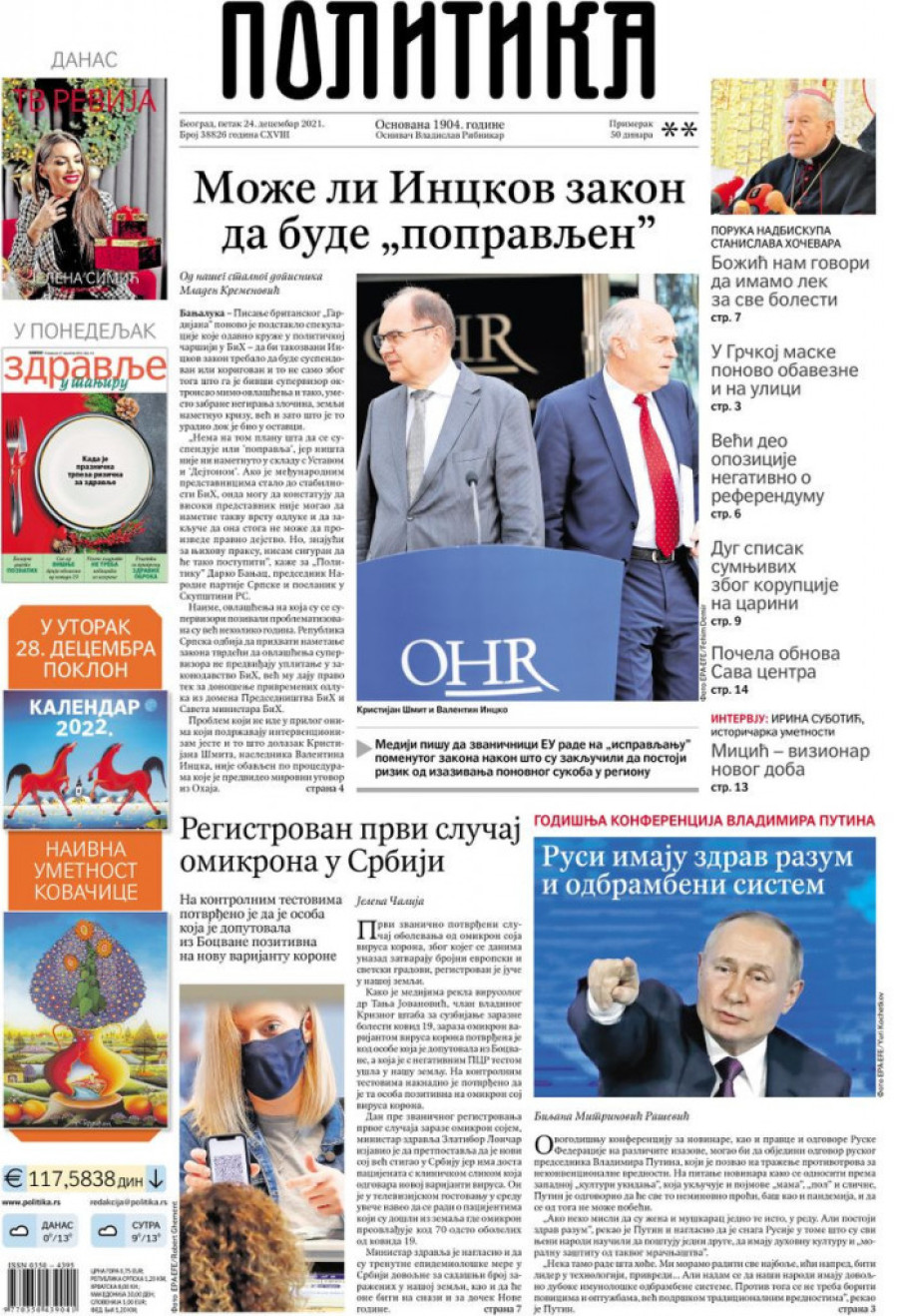 Prelistavanje štampe za petak 24. decembar 2021. godine