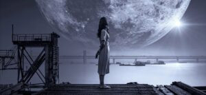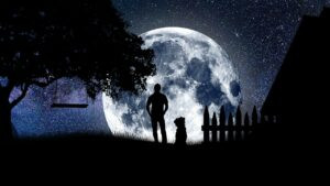Značenje: crna oluja, crno nebo, Mesec, jedan cvet, zapad
