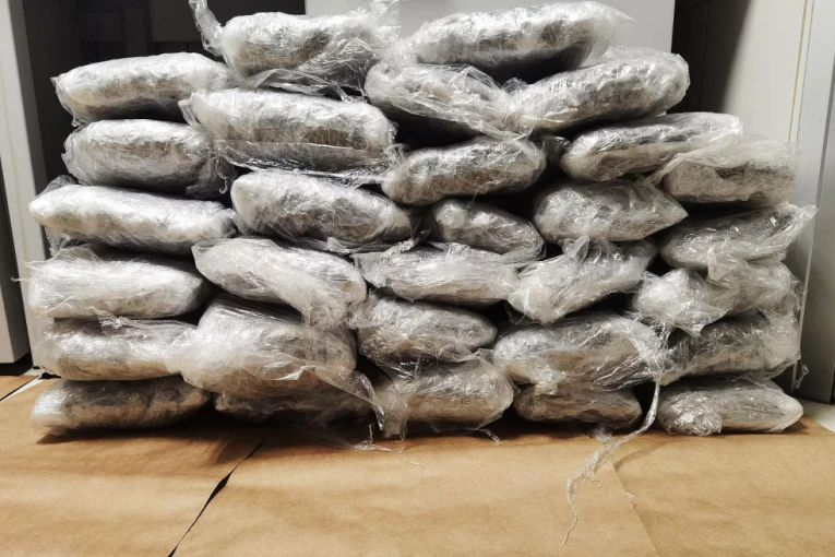 Policija je prilikom pretresa vozila „mercedes“ u kome su se nalazili osumnjičeni Z.M. i M.M, iza zadnjeg sedišta u specijalno izrađenom prostoru pronašla 30 paketa sa oko 15 kilograma biljne supstance za koju se sumnja da je opojna droga marihuana, navodi se u saopštenju MUP.