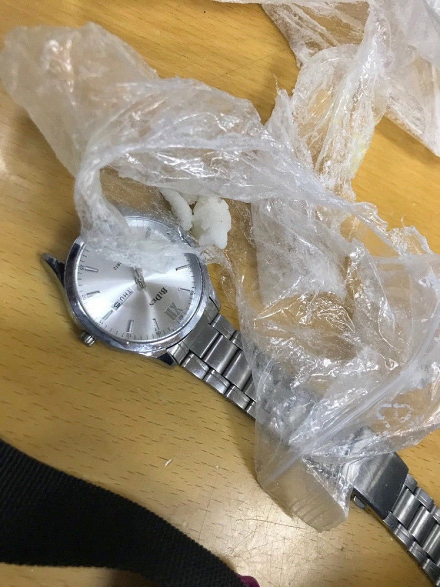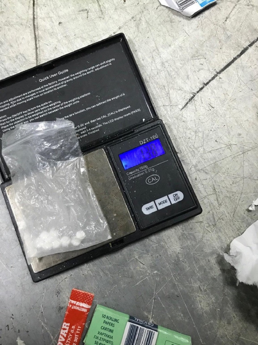 Kesica je bila puna kristalne bele materije za koju je putnica kasnije potvrdila da je reč o drogi ”spid”, a koja se tokom incidenta delom rasula po službenoj prostoriji, a delom po betonskom pločniku ispod prozora i po travnjaku.