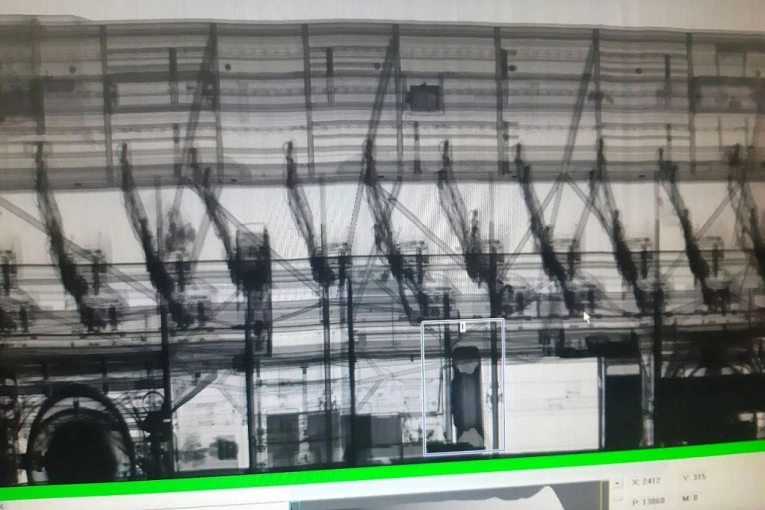 Na zahtev granične policije autobus je skeniran i tom prilikom su u predelu rezervnog točka uočene nepravilnosti i odstupanja.