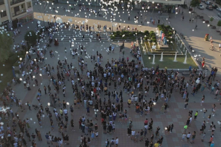 Tuga i suze na licima Čačana: Beli baloni se vinuli u znak sećanja na Ognjena, Ivana, Luku i Nikolu, simbolična četiri nisu odletela (VIDEO)