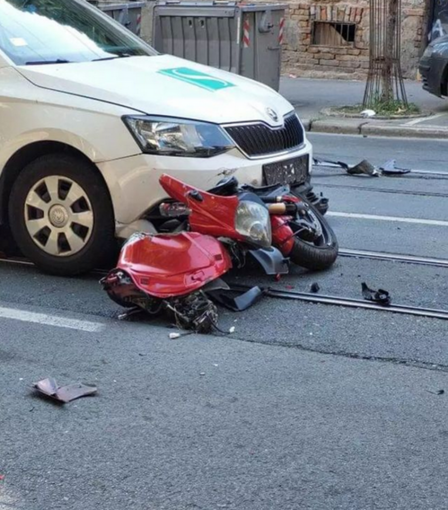 U Beografskoj ulici na Vračaru oko 15 časova došlo je do sudara motocikla "Suzuki GSX R1000", kojim je upravljao mladic star oko 20 godina, i više putničkih vozila u pokretu.