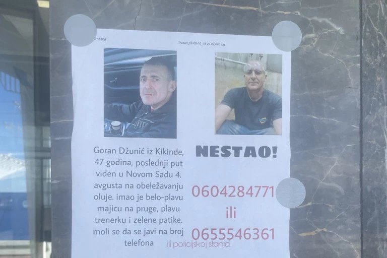 Goran Džunić, 47-godišnji Kikinđanin, nestao je tokom obeležavanja "Oluje", 4. avgusta na Trgu slobode u Novom Sadu.