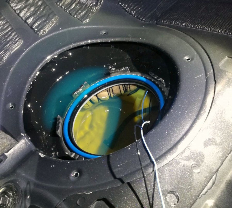Uz pomoć vakum pumpe iz rezervoara je izvučena tečnost, a nakon skidanja plovka unutra su pronađeni paketići vakumirani folijom i uvezani kanapom, koji su prethodno otkriveni u prtljažniku automobila.