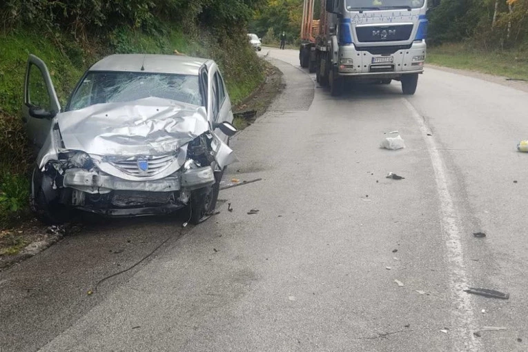 Sudarili se auto i kamion: Dve osobe povređene u nezgodi , zbog uviđaja saobraćaj ka graničnom prelazu Jabuka u prekidu (FOTO)