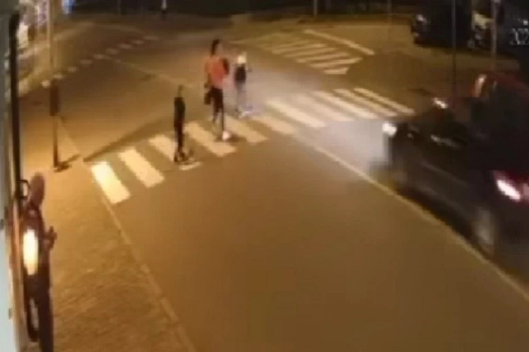 Žena sa troje dece, da podsetimo, od kojih dvoje voze trotinet, a jedno drži u naručju krenula je da pređe ulicu na pešačkom prelazu na kojem nema semafora.