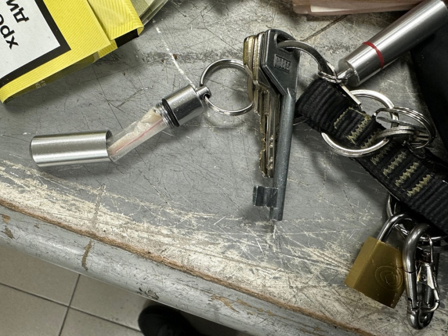 U unutrašnjem džepu jedne od tri jakne koje je pomenuti putnik nosio na sebi, otkriveni su plastična vrećica sa kristalnim prahom, epruveta sa nepoznatom tečnošću bledožute boje, špric sa tečnošću braon boje, deset nepoznatih tableta bele boje, kao i jedna vrećica sa kristalnim prahom skrivena u unutrašnjosti metalnog priveska za ključeve.