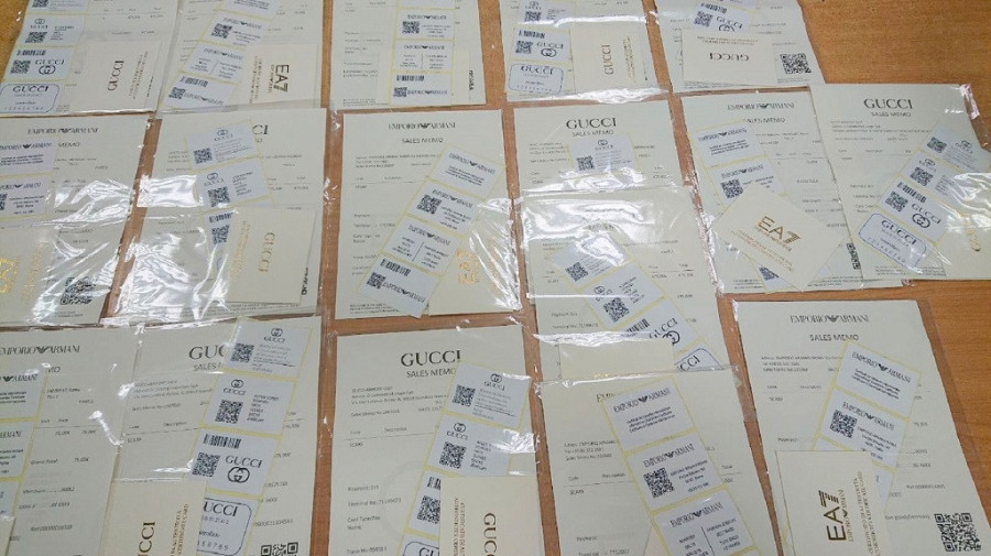 Među putnicima tog autobusa našao se i 51-godišnji Piroćanac u čijoj su torbici, koju je nosio oko struka, carinici pronašli sertifikate, nalepnice i bar kodove za razne modne detalje (marame, šalove, rukavice, čarape, šešire, kaiševe, nakit) svetski poznatih marki ”Gucci” i ”Emporio Armani” čija je vrednost od 75 do 475 evra.
