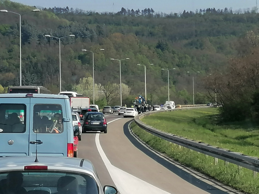 Najmanje dvoje ljudi jutros je povređeno u sudaru tri vozila na auto-putu kod Bubanj potoka, što je dovelo do potpune obustave saobraćaja.