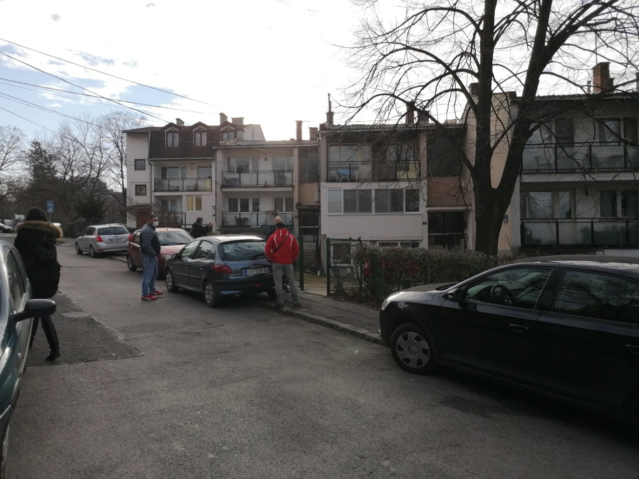 Na licu mesta je policija i razgovara sa jednom komšija uhapšenog vlasnika stana Nenada I.