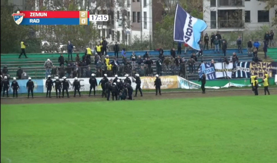 Pored vođe i navijača Rada, Dragana S. i B. Đ., policija je uhapsila i navijača Zemuna M. R. (20). On je, kako nezvanično saznajemo, osumnjičen da je napao golmana Rada, posle čega je nastala makljaža na terenu. Navijači Zemuna, poznati kao "Taurunum bojs" sa fantomkama na glavama upali su na teren i pretukli golmana, koji je prevezen u Urgentni centar sa povredama glave. Utakmica je, inače, prekinuta u 17. minutu i nije nastavljena.