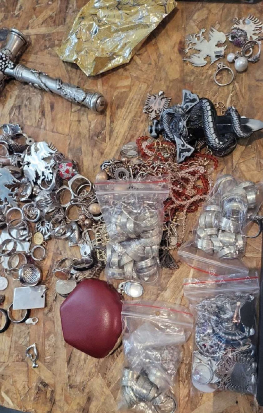 Među nakitom se našlo čak 350 prstenova, 40 narukvica, 41 lančić, 180 pari minđuša i 210 privezaka. Strani državljanin je rekao da je vlasnik prodavnice nakita u inostranstvu i da ga nije prijavio jer nije znao da to treba da uradi.