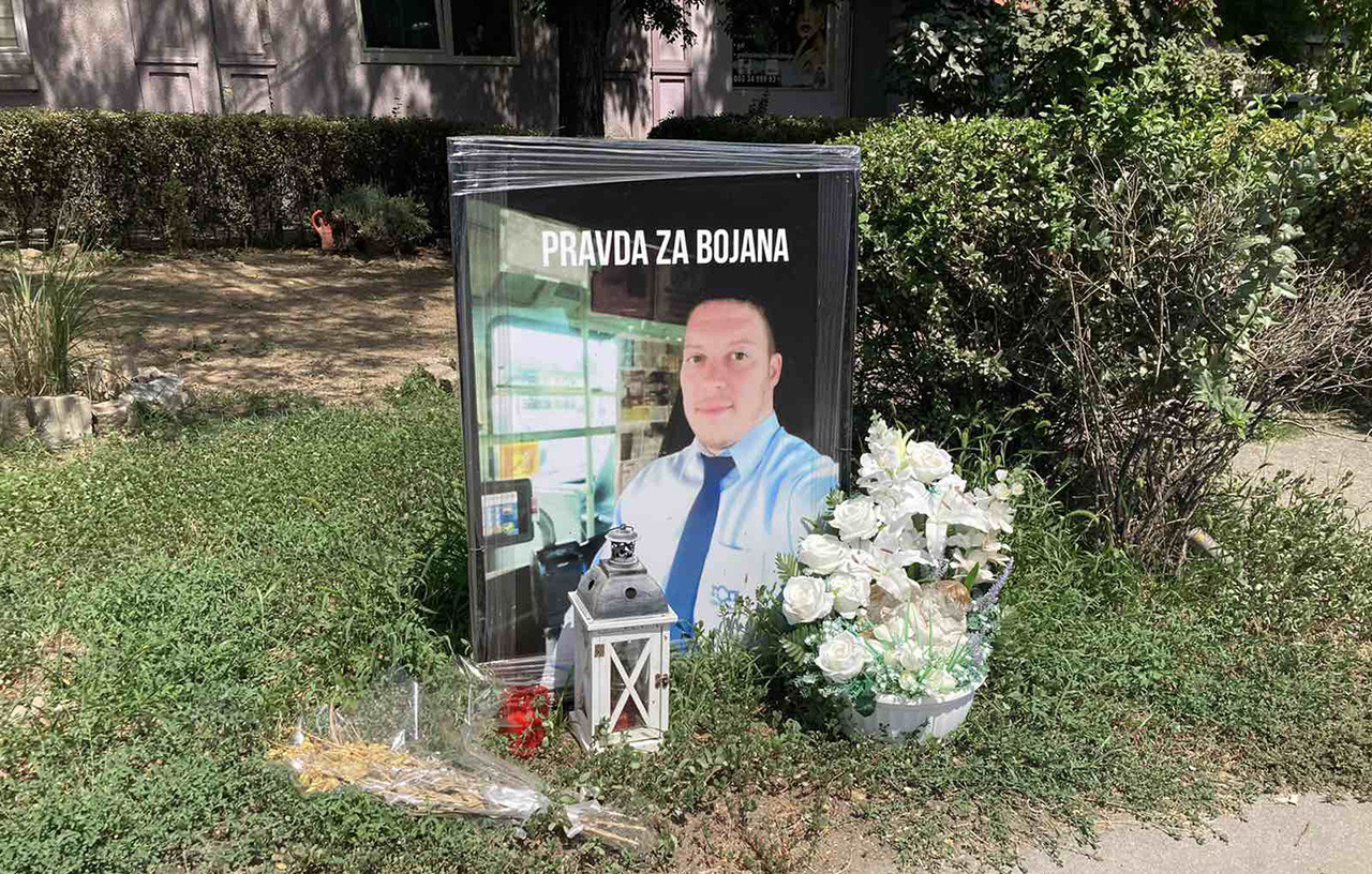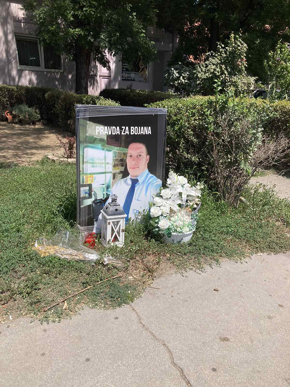 Kraj spomen ploče na kojoj piše “Pravda za Bojana”, stoji i buket u žutoj boji, kao i sveće.