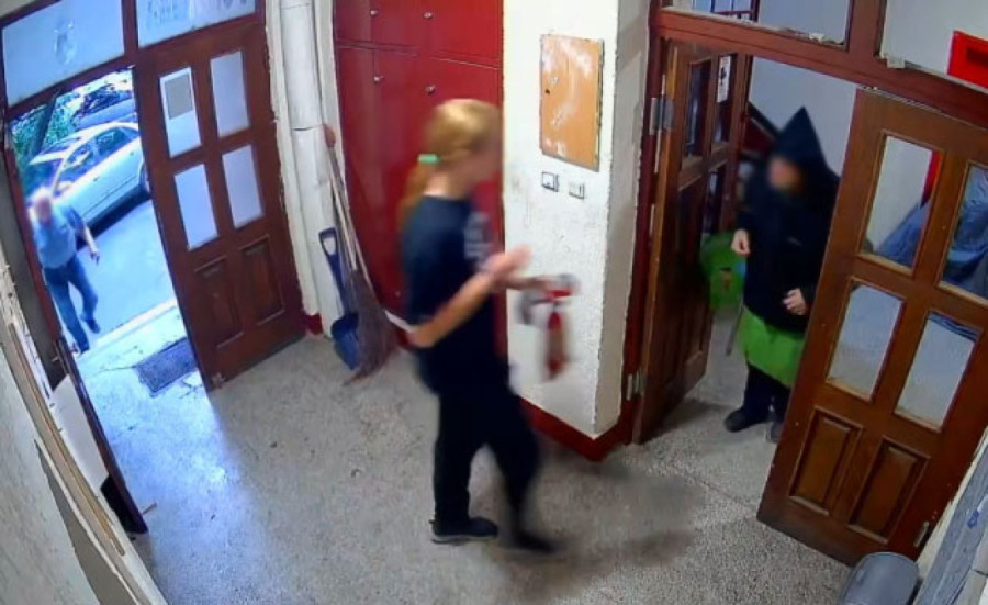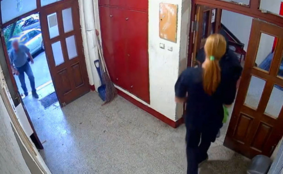 Na snimku se vidi kako stariji muškarac pesnicom udara mladića koji mirno stoji u holu zgrade i ne uzvraća mu, niti se brani