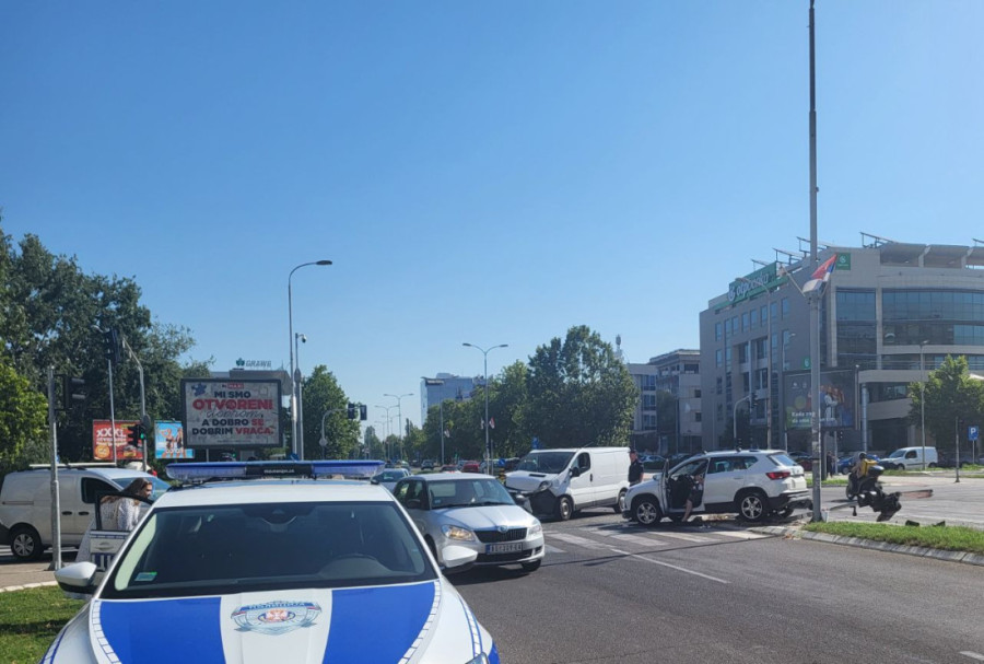 Policija je na licu mesta i vrši uviđaj. Saobraćaj je na ovoj raskrsnici usporen, a stigla je i šlep služba.