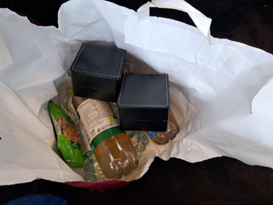 Carinski i policijski službenici su tokom kontrole, iza zadnjeg sedišta, u kesi sa grickalicama i osvežavajućim napicima, pronašli i dva ručna sata marke "rolex daytona".