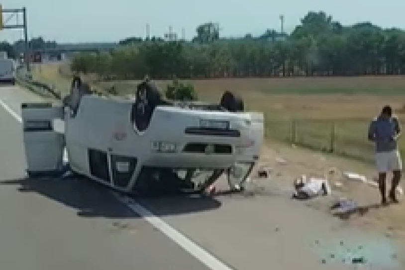 Kako se vidi na snimku koji je postavljen na pomenutoj stranici, beli kombi se prevrnuo, a od siline udarca popucalo je staklo koje je sada svuda po putu.