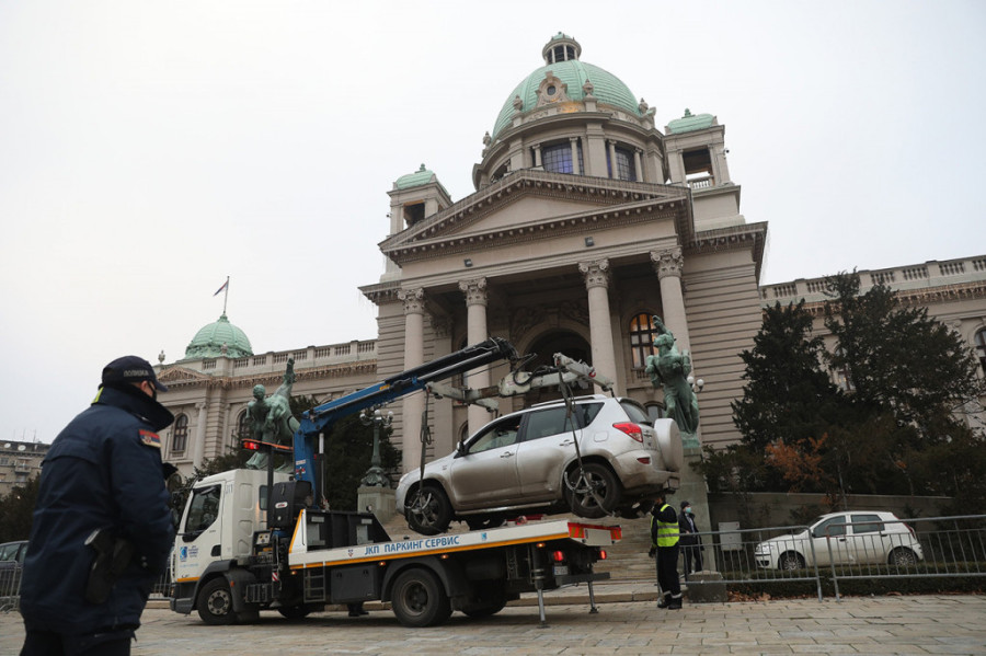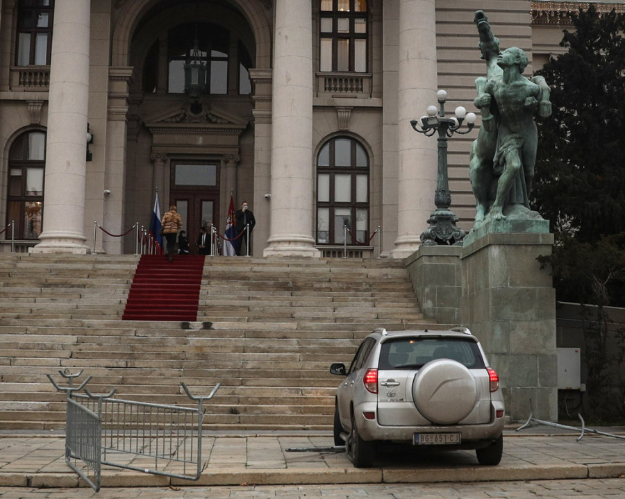 P. B. (41) uhapšen je nakon što je automobilom probio zaštitnu ogradu ispred glavnog ulaza Doma Narodne skupštine.