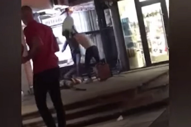 Na snimku se vide i prolaznici koji su batinanje sve vreme nemo posmatrali.