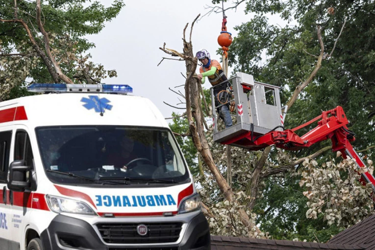 Tokom seče drveća u centru Smedereva došlo je do nezgode kada je pala dizalica sa korpom.