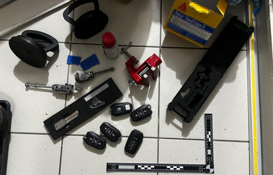 Kako je navedeno, prilikom pretresa stana i drugih prostorija na više lokacija kod osumnjičenog D.R. i još jednog muškarca pronađeno je više vrsta alata za koje se sumnja da je korišćen za otvaranje vozila, više blanko ključeva za startovanje motora vozila, kao i stranih registarskih oznaka i ometača signala.