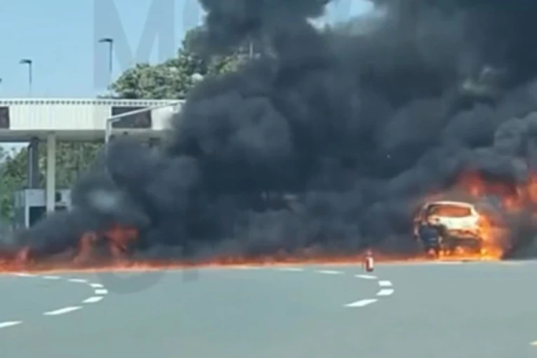 Ogroman požar na naplatnoj rampi Obrenovac: Gori automobil, crni dim kulja na sve strane (VIDEO)