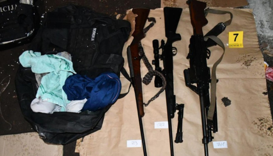 Zaplenjeno je i nekoliko stotina komada municije različitog kalibra, dva pancirna prsluka sa oznakama „Policija“, sredstva za vezivanje – lisice