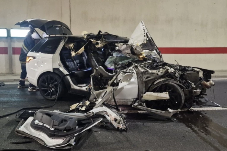 Džip potpuno smrskan - uznemirujuće slike sa autoputa: Vozač izgubio kontrolu pa se u tunelu zakucao u zid (FOTO)