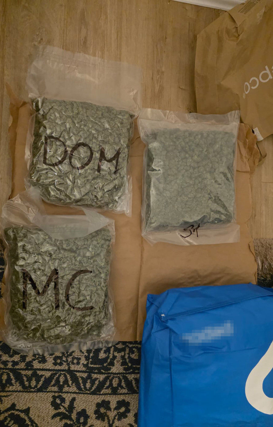 Takođe, policija je otkrila tri presovana paketa i više kesica biljne materije nalik na marihuanu, više vagica za precizno merenje, kao i opremu koja se dovodi u vezu sa distribucijom narkotika. Oduzete su i falsifikovane isprave, više komada hladnog oružja, silikonska maska, kao i motocikl i teretno motorno vozilo.