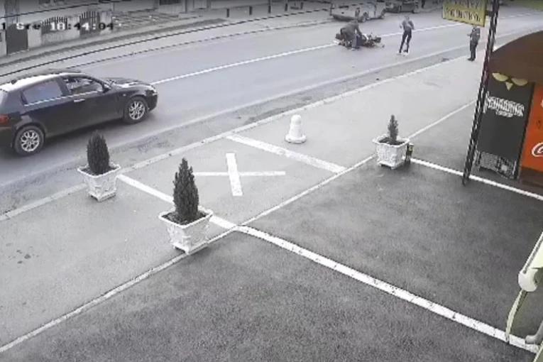 Nakon sudara, motociklista je ostao da leži na putu, a ljudi koji su se našli na licu mesta, prišli su da pomognu povređenom.