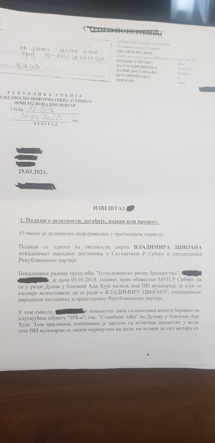 Razgovor sa radnikom je, kako se vidi na objavljenim dokumentima, BIA obavila 25. marta 2021. godine. Radnik je tada rekao da “do pre nekoliko dana nije imao nikakva saznanja o identitetu pomenutog NN muškarca”.