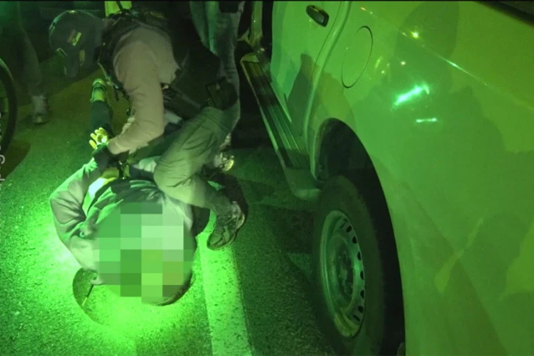 Na snimku MUP-a može se videti kako policajci osumnjičenog izvlače iz automobila i obaraju ga na zemlju, a zatim ga hapse.