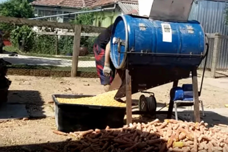 Muškarac je radio radnoj mašini-krunjaču kukuruza.