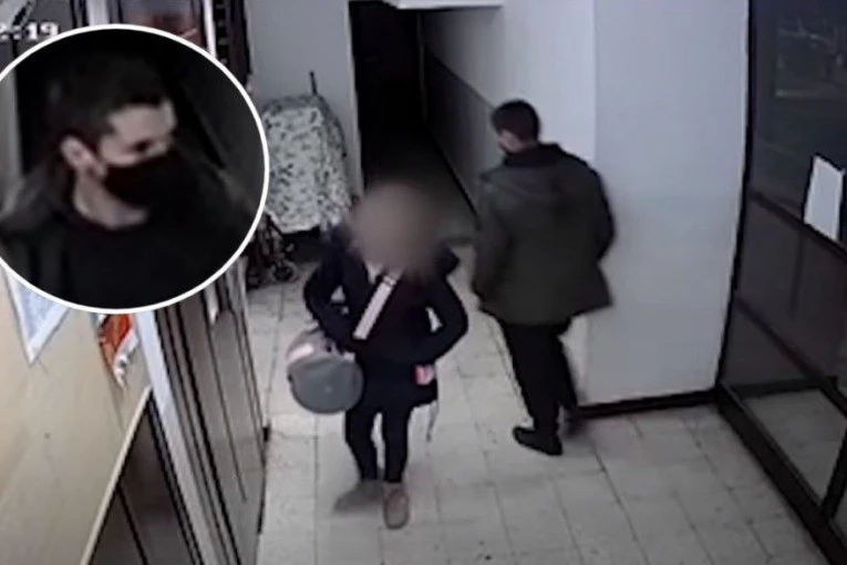 Na snimcima se jasno vidi mlađi muškarac koji je najpre stajao ispred zgrade i čekao da devojčica uđe u hodnik. Krenuo je za njom izvadivši polni organ još na ulici.