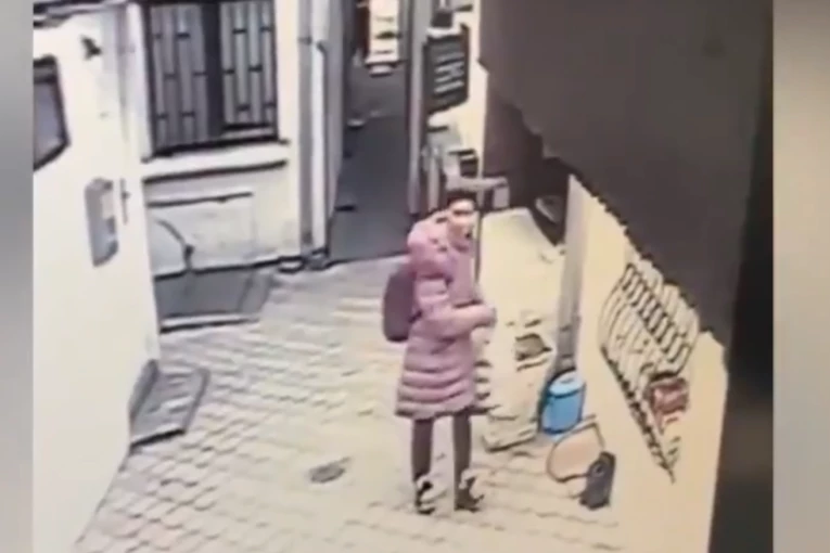 Nadzorne kamere usnimile su ženu koja je ušla u dvorište zgrade na Cvetnom trgu na Vračaru u strogom centru grada. Na snimku se može videti kako se najpre osvrće levo- desno, a zatim uzima patike ostavljene ispred vrata.
