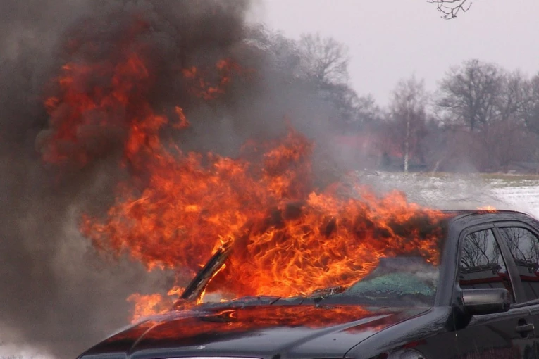 Automobil u plamenu primećen je na lokalnom putu Tobolac - Gornja Omasnica, u neposrednoj blizini fabrike vode