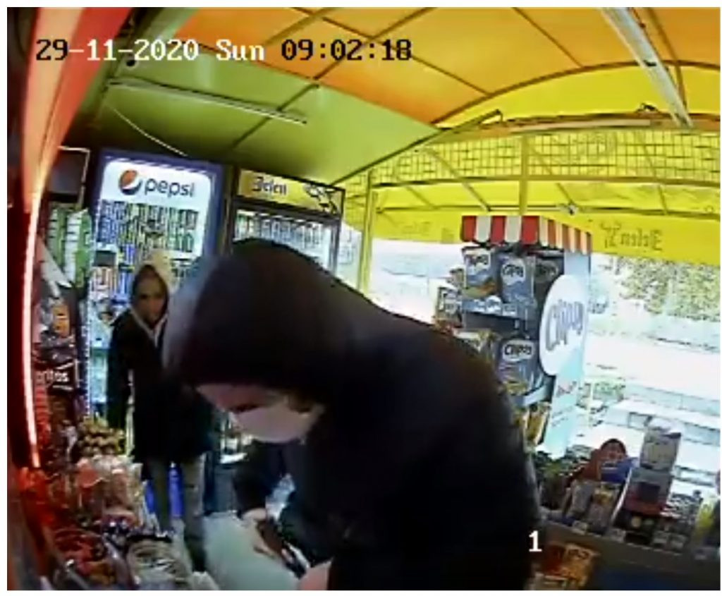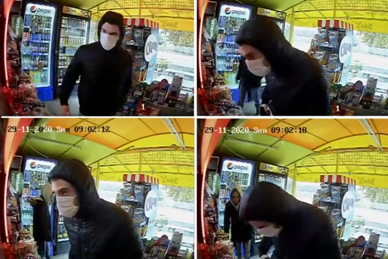 Pljačka se odigrala juče u 9 časova u Zrenjaninu. Na snimku se vidi kako F. S. prilazi trafici i vadi pištolj iz džepa. Jednoj osobi koja stoji pored preteći pokazuje prstom, a potom uzima nova koji mu je radnica predala i trkom beži.