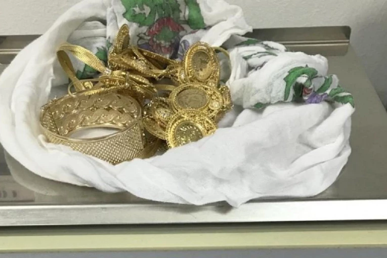 Carinici su u saradnji sa policijom u nedelju na graničnom prelaza Horgoš sprečili kosovskog Abanca da prokrijumčari 230 grama zlatnog nakita uvijenog u maramu i skrivenog u prtljag.