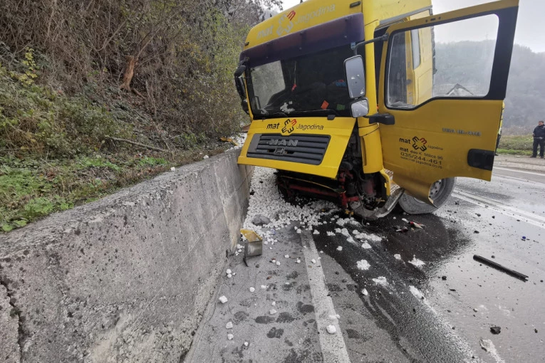 Vozač kamiona sa teškim povredama prebačen je u Opštu bolnicu u Čačku.