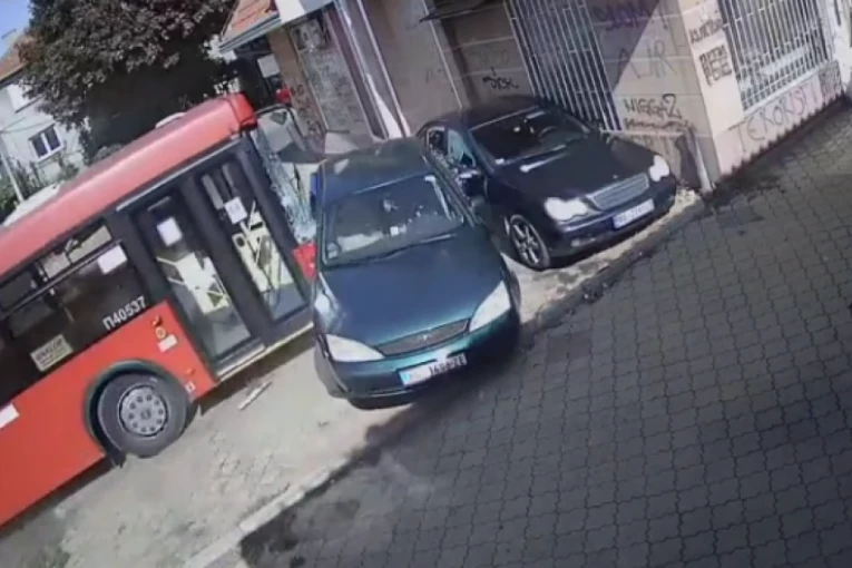 Autobus koji saobraća na liniji 45 uleteo je danas na dečije igrlište u ulici Krajiška 71a u Zemunu, a na snimku sa sigurnosne kamere se vidi trenutak nesreće.