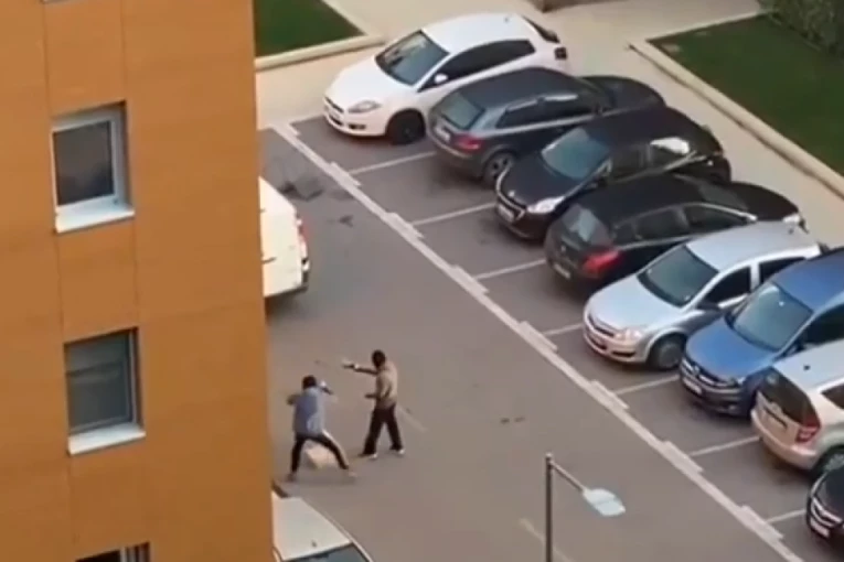 Na društvenim mrežama pojavio se snimak jutrošnje pucnjave dvojice muškaraca koji su nasrnuli na žrtvu u ulici Uroša Martinovića. Čuo se i jedan pucanj
