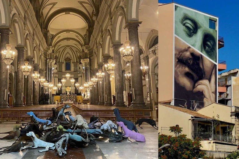 Među predstavljenim umetničkim delima su 54 skulpture pasa u prirodnoj veličini, umetnika Velaska Vitalija, raspoređene po ključnim lokacijama. Neke su izložene u crkvi San Domeniko, gde se nalazi Falkoneova grobnica.