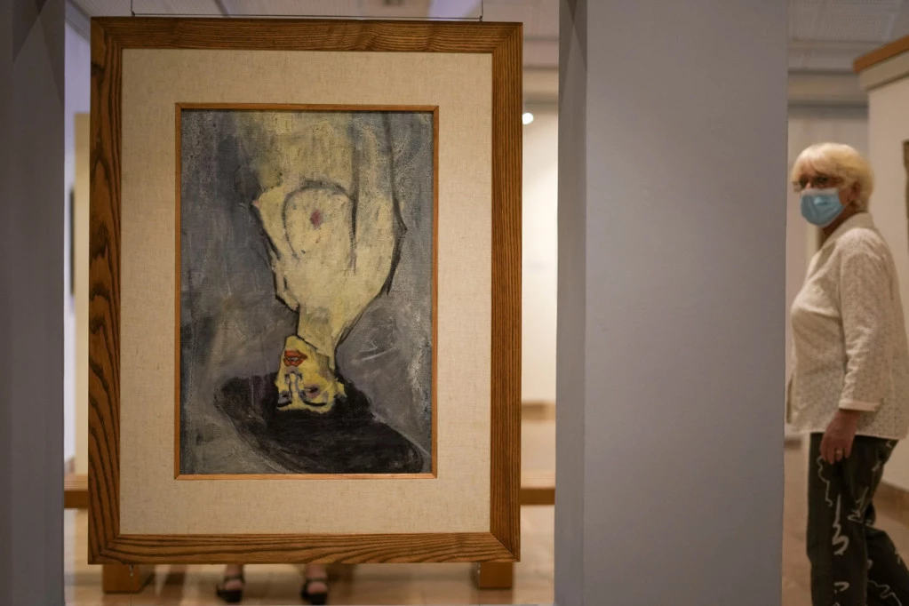 Posetioce koji ulaze u galerije muzeja Heht susreće naopaki goli portret, a lik Mod Abrantes je na poleđini.