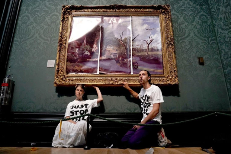 Ekološki aktivisti nastavljaju sa neobičnim vidom protesta protiv izazivača klimatskih promena, tako što se fizički lepe za poznata umetnička dela.