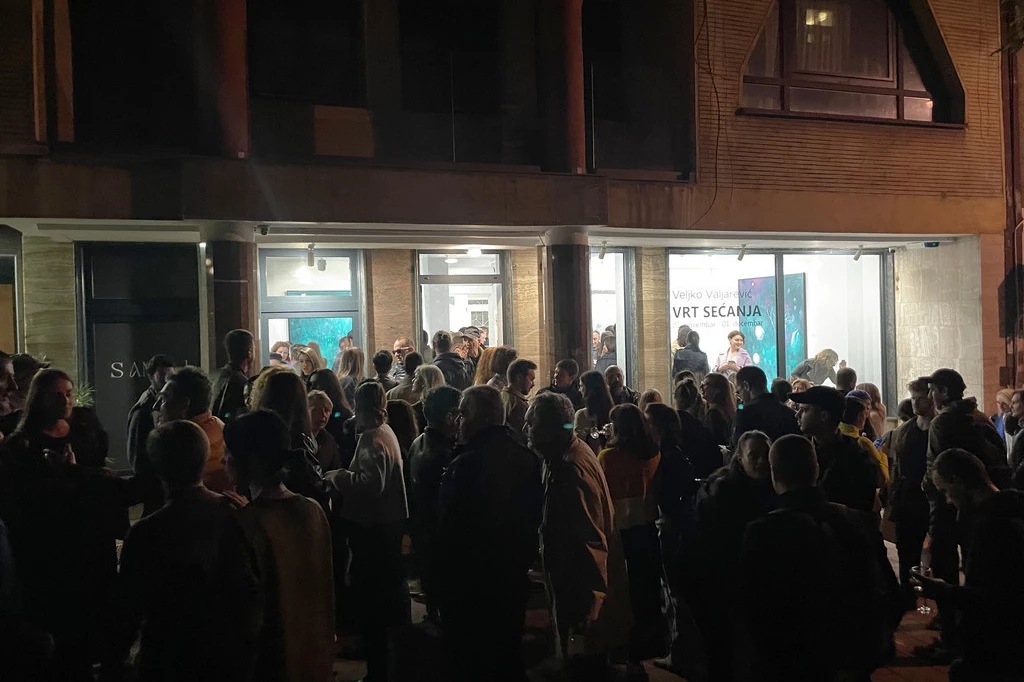 Ulica Dositejeva, ispred galerije Sanjaj, bila je zakrčena tokom otvaranja izložbe „Vrt sećanja“ mladog umetnika Veljka Valjarevića iz Užica. Ovom izuzetnom izložbom galerija Sanjaj proslavlja svoj prvi rođendan. Osim prijatelja i poštovaoca umetnosti ovom nesvakidašnjem kulturnom događaju je prisustvovao i veliki broj mladih ljudi.