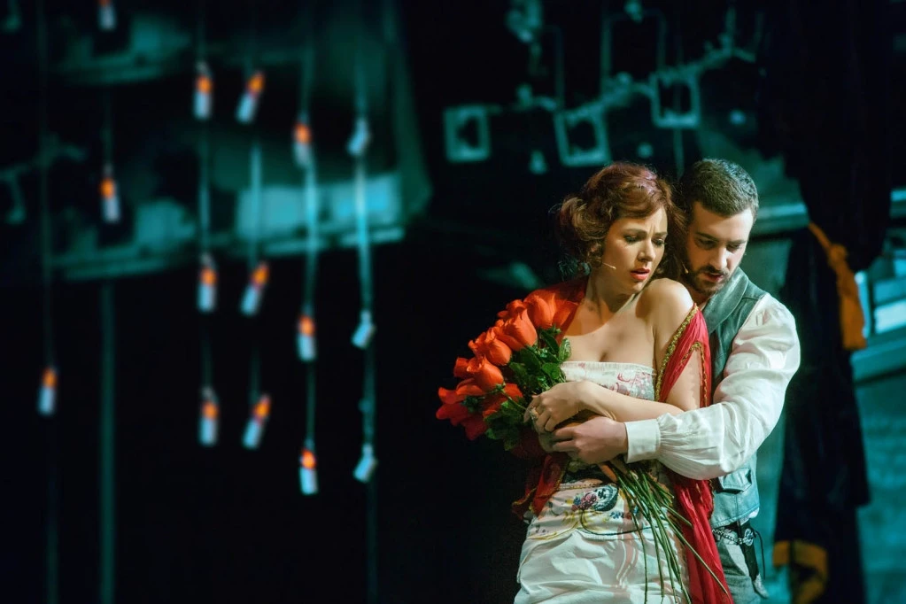 U predstavi igraju: Ivan Bosiljčić/Aleksandar Vučković, Ivana Popović Ilijin/Milena Živanović, Ivana Knežević, Slobodan Stefanović, Miloš Đorđević, Iva Stefanović, Miroljub Turajlija, Milan Antonić, Maja Noveljić, Vladan Savić, Ivan Zablaćanski, Ana Radivojević, Saša Joksimović, Jelena Arsić, kao i balet, hor i orkestar Pozorišta na Terazijama.